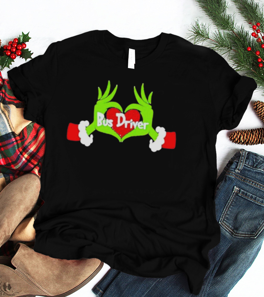 Grinch Hand Heart Bus Driver Christmas Love T-Shirt