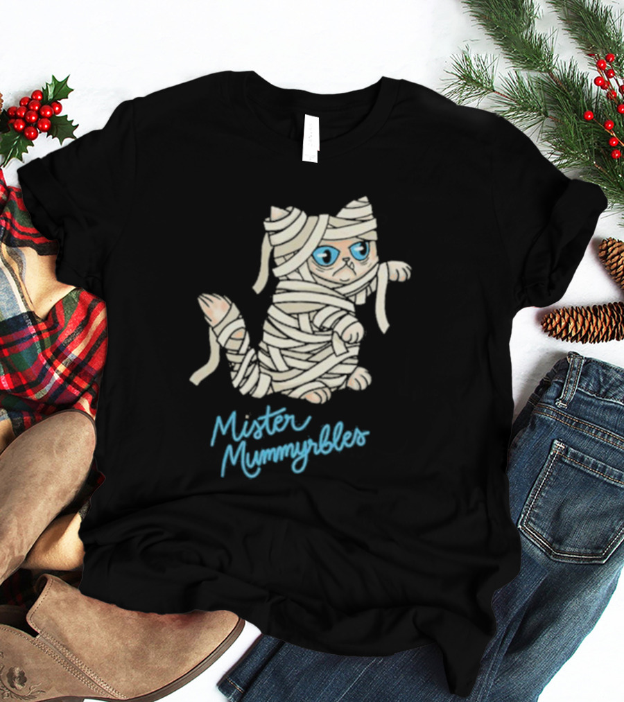 Lilbub Mister Mummyrbles Wrapped Cat With Blue Text T-Shirt