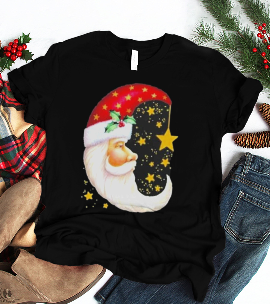 Christmas Santa Crescent Moon Starry Hat Print Crew Neck Shirt made from 100% pre-shrunk ring-spun cotton, unisex regular fit based on U.S. standard sizing. The shirt is designed, cut, sewn, and printed in the United States. Available in sizes S-5XL.