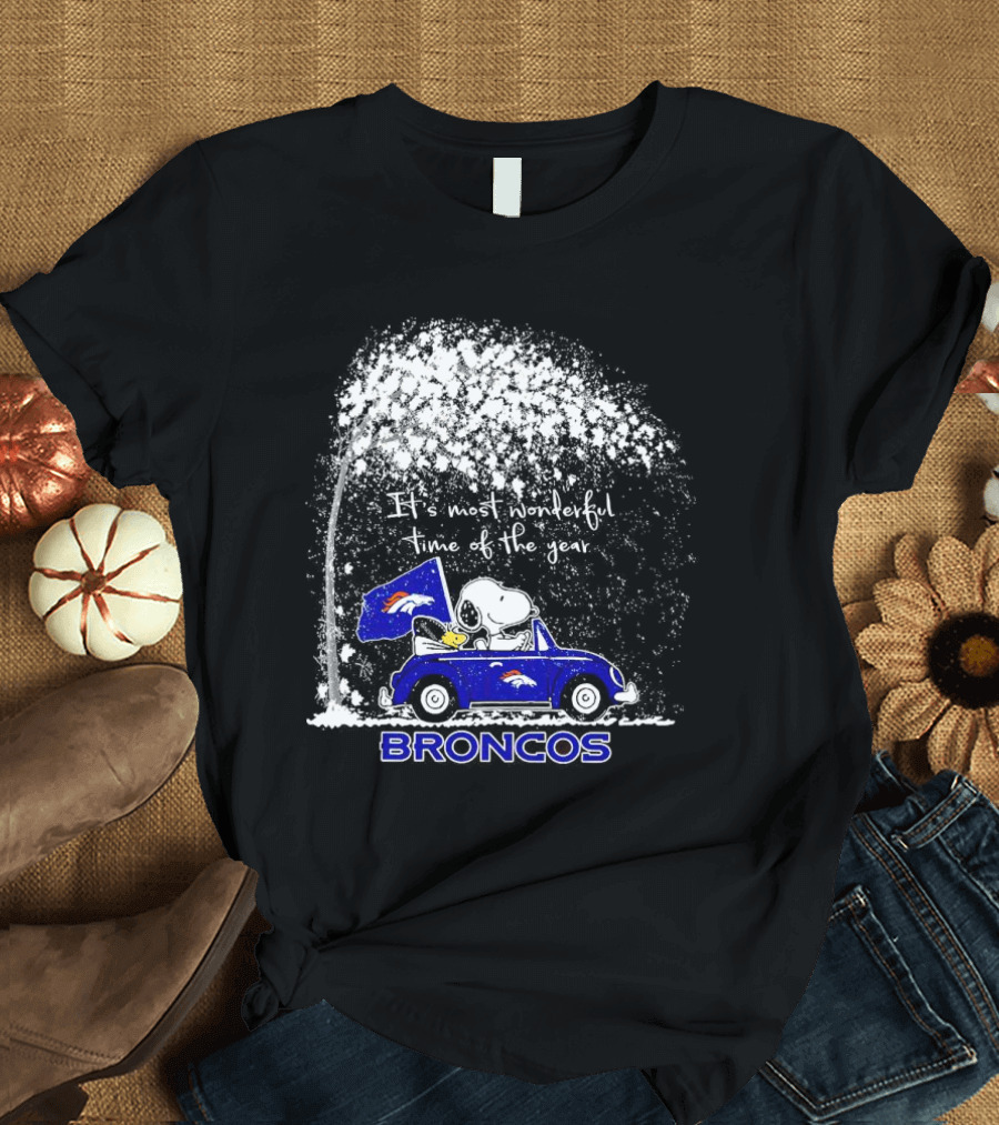Snoopy And Woodstock Broncos It’s Most Wonderful Time Of The Year Winter Scene T-Shirt