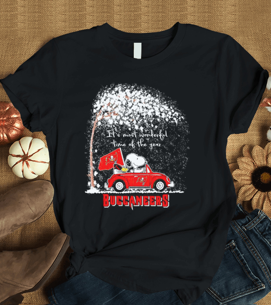 Snoopy And Woodstock Buccaneers It's Most Wonderful Time Of The Year Winter Scene T-Shirt