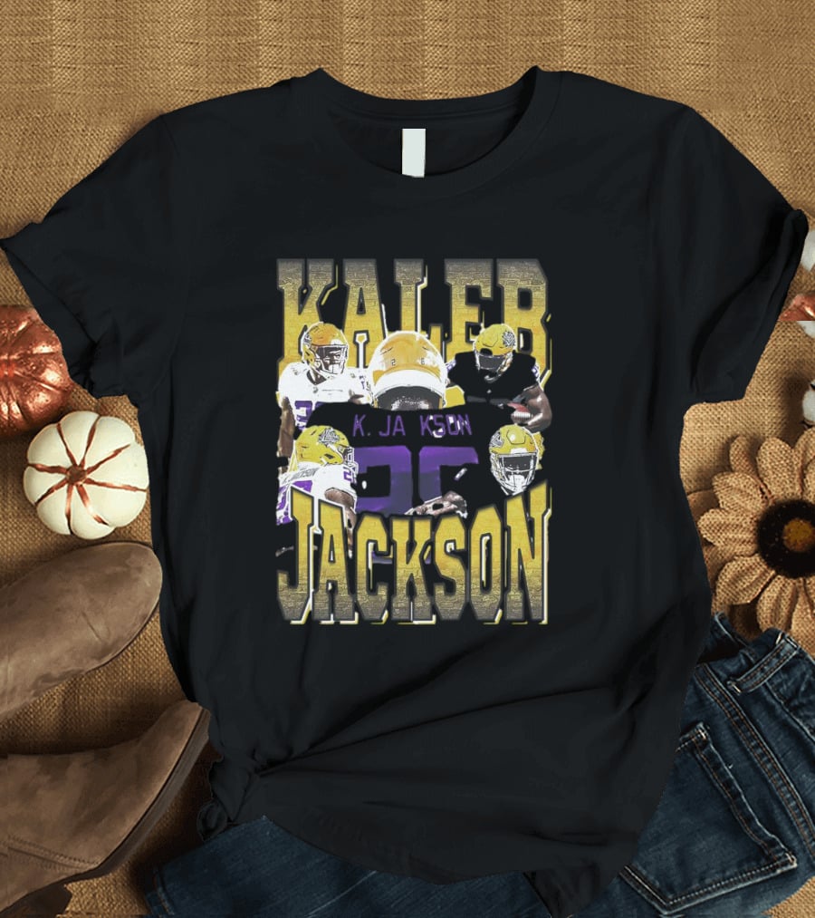 Kaleb Jackson LSU Tigers Football Vintage Retro Athlete Collage Shirt made from 100% pre-shrunk ring-spun cotton, unisex regular fit based on U.S. standard sizing. The shirt is designed, cut, sewn, and printed in the United States. Available in sizes S-5XL.