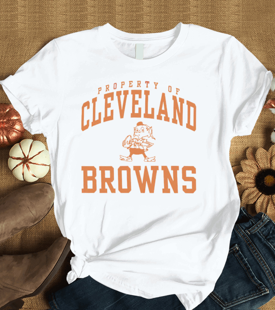Property of Cleveland Browns Football Mascot Classic Shirt made from 100% pre-shrunk ring-spun cotton, unisex regular fit based on U.S. standard sizing. The shirt is designed, cut, sewn, and printed in the United States. Available in sizes S-5XL.