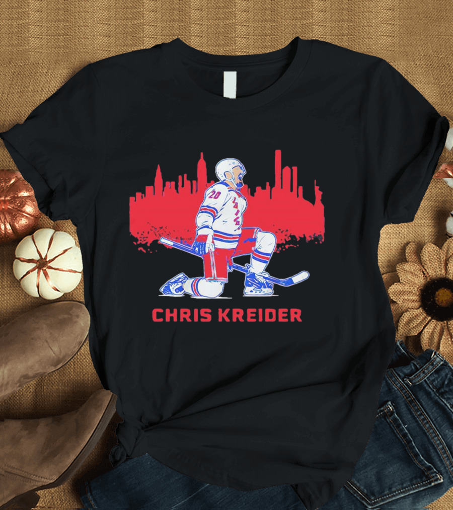 Chris Kreider New York Rangers Skyline Kneeling Hockey Player T-Shirt