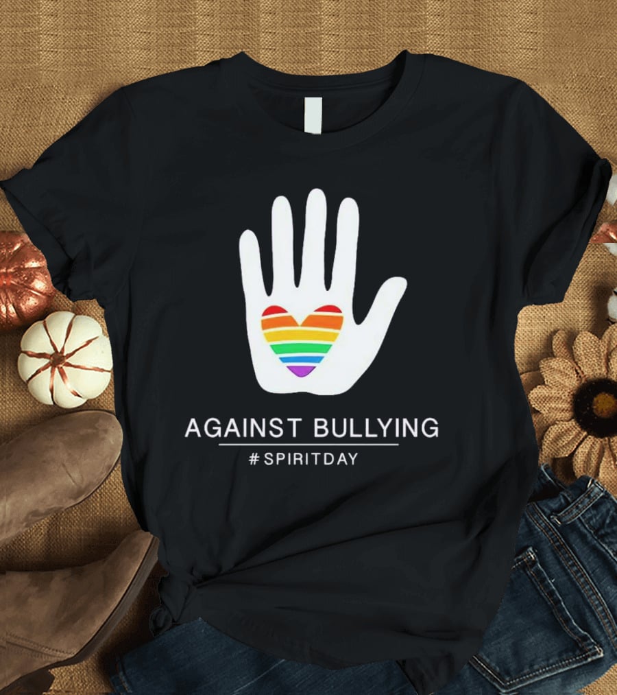 Against Bullying Rainbow Heart Hand Spirit Day T-Shirt