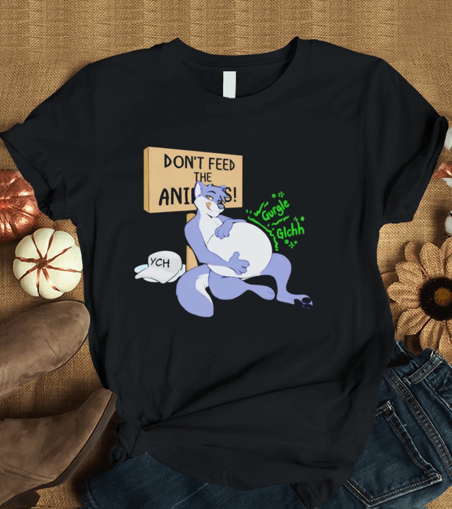 Don't Feed The Animals Gurgle Glchh YCH Sign With Full-Bellied Purple Cartoon Character T-Shirt