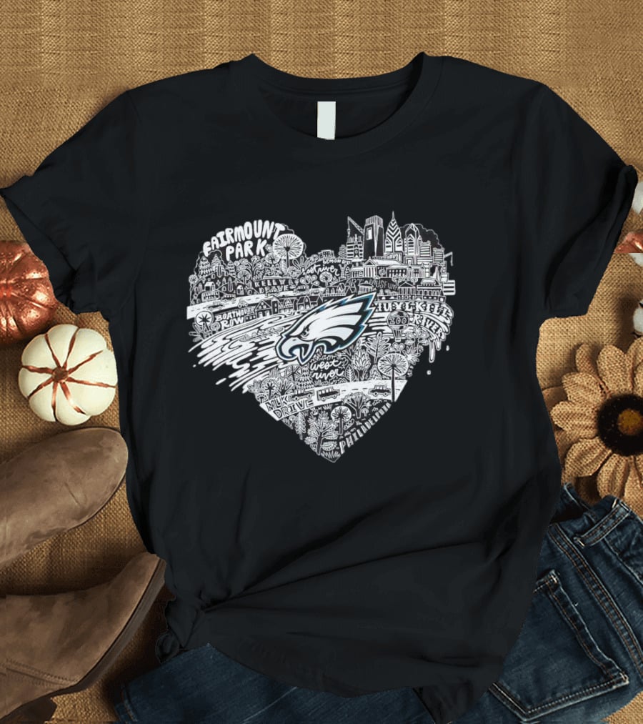 Fairmount Park Philadelphia Eagles Love Heart City Skyline West River Kelly Drive Zuzka Kols Park T-Shirt
