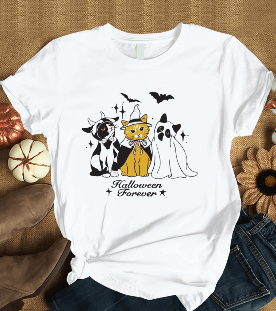 Halloween Forever Cats Witch Ghost Costumes Bats T-Shirt