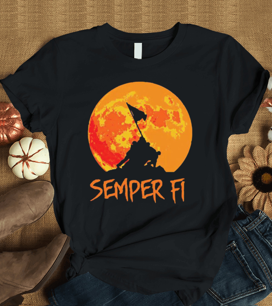 Semper Fi Halloween Full Moon Flag Raising T-Shirt