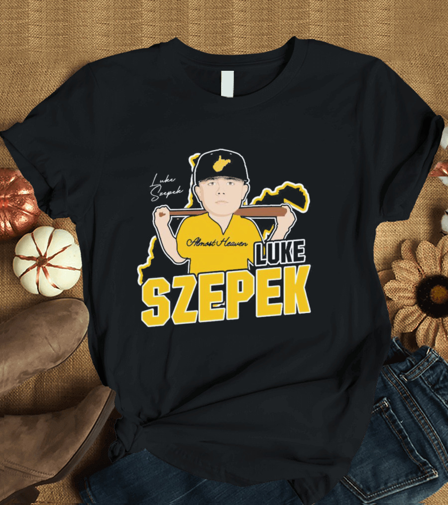Luke Szepek Almost Heaven Caricature Signature Shirt made from 100% pre-shrunk ring-spun cotton, unisex regular fit based on U.S. standard sizing. The shirt is designed, cut, sewn, and printed in the United States. Available in sizes S-5XL.