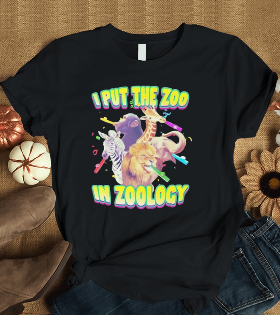 I Put The Zoo In Zoology Lion Elephant Zebra Chimpanzee Giraffe Celebratory Whistles T-Shirt