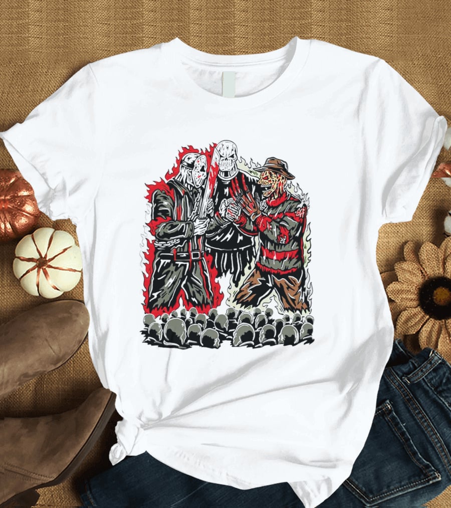 Violent Face Off Horror Movie Characters Freddy Krueger Pyramid Head Crossover T-Shirt