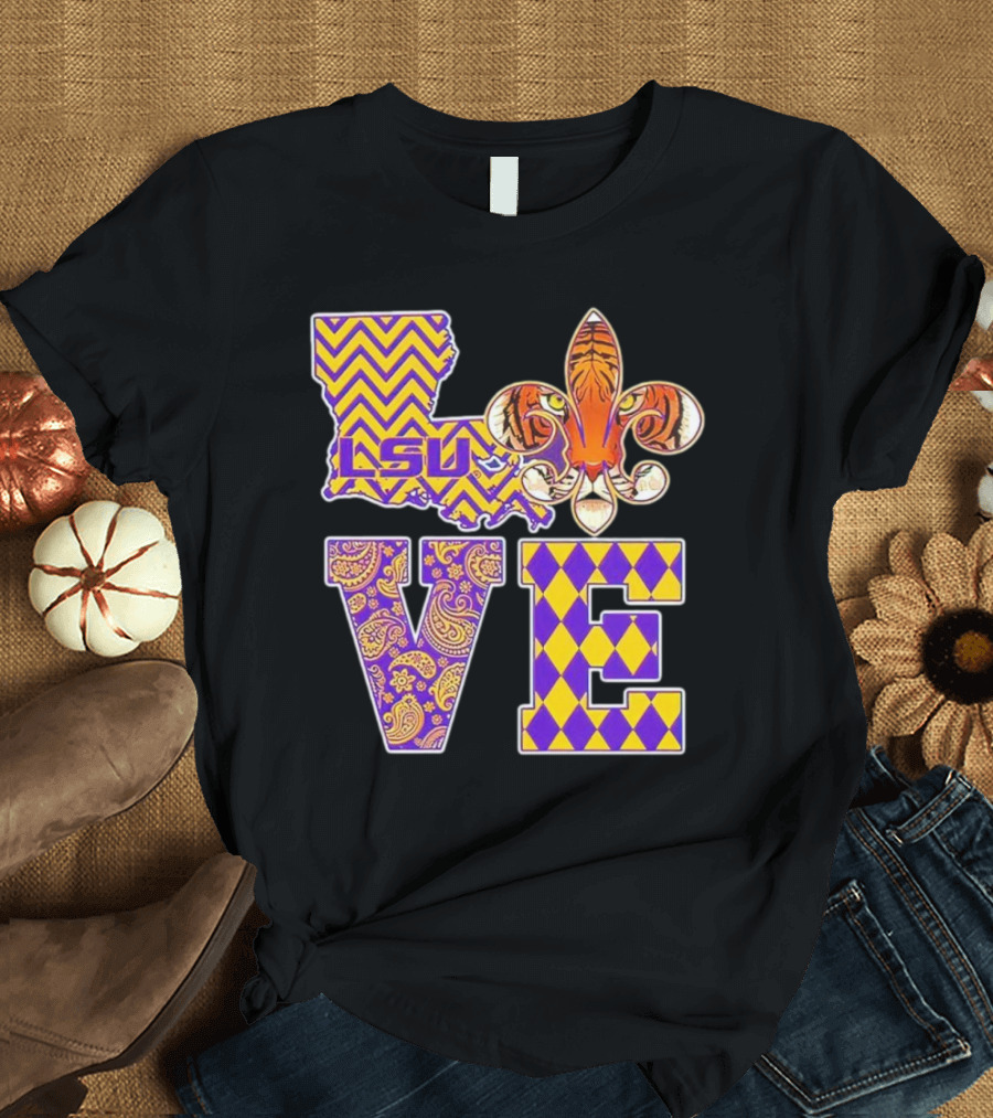 LSU Tigers Love Fleur De Lis Louisiana Purple Gold Chevron Paisley Harlequin T-Shirt