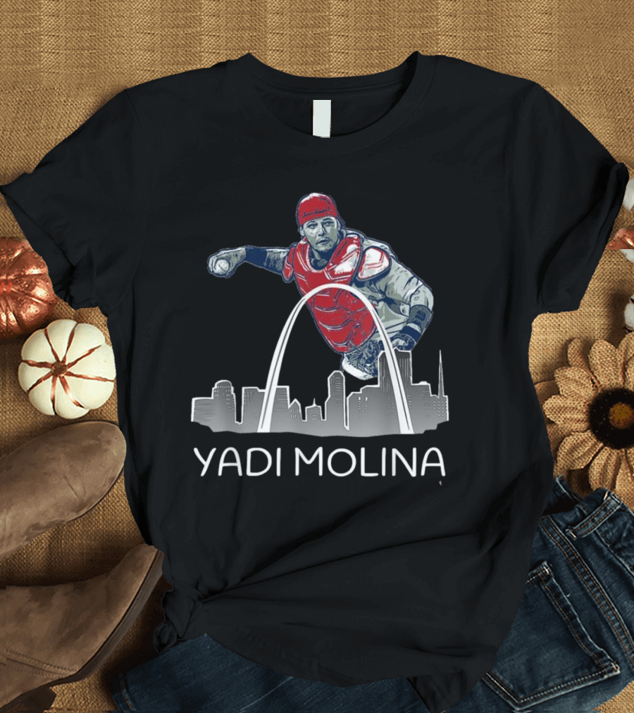Yadi Molina St. Louis Skyline Arch Baseball T-Shirt