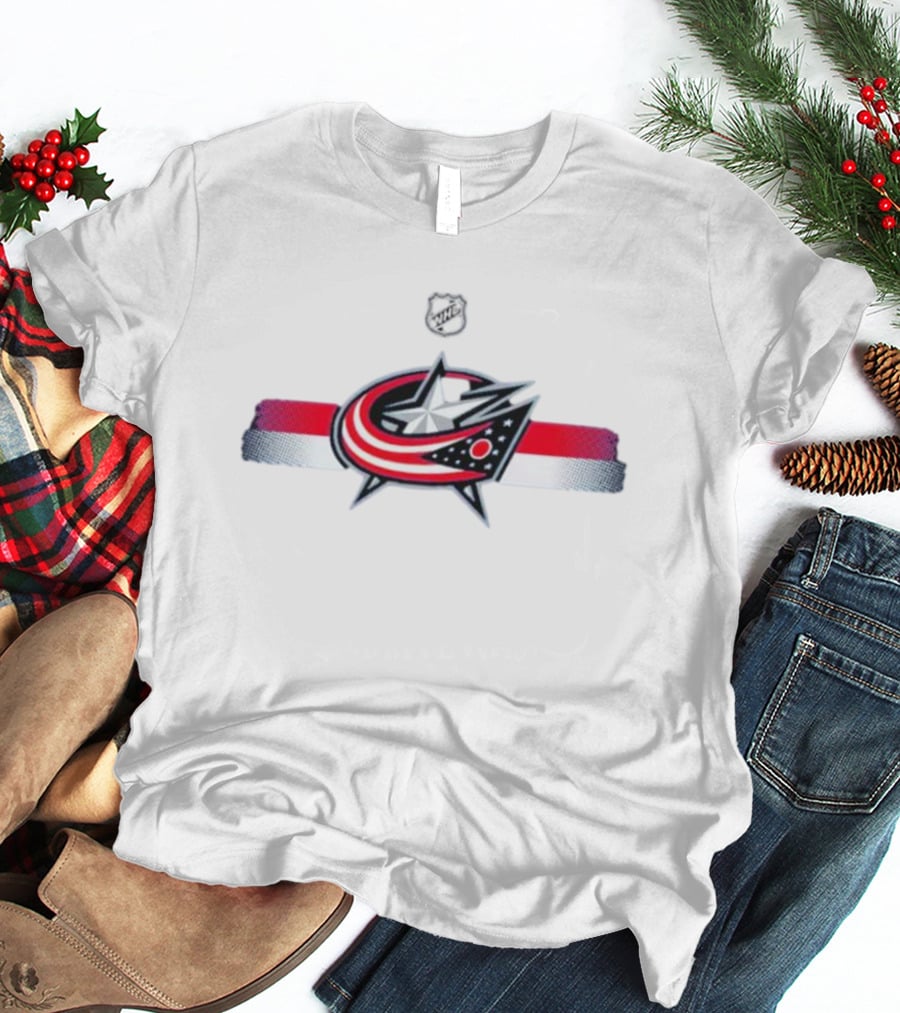 NHL Columbus Blue Jackets Emblem With Red White Blue Stripes T-Shirt