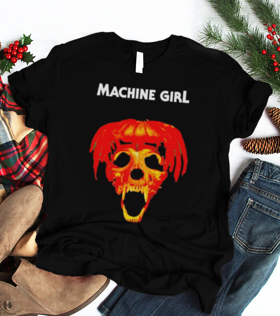 Machine Girl Skull Pumpkin Face Shirt made from 100% pre-shrunk ring-spun cotton, unisex regular fit based on U.S. standard sizing. The shirt is designed, cut, sewn, and printed in the United States. Available in sizes S-5XL.