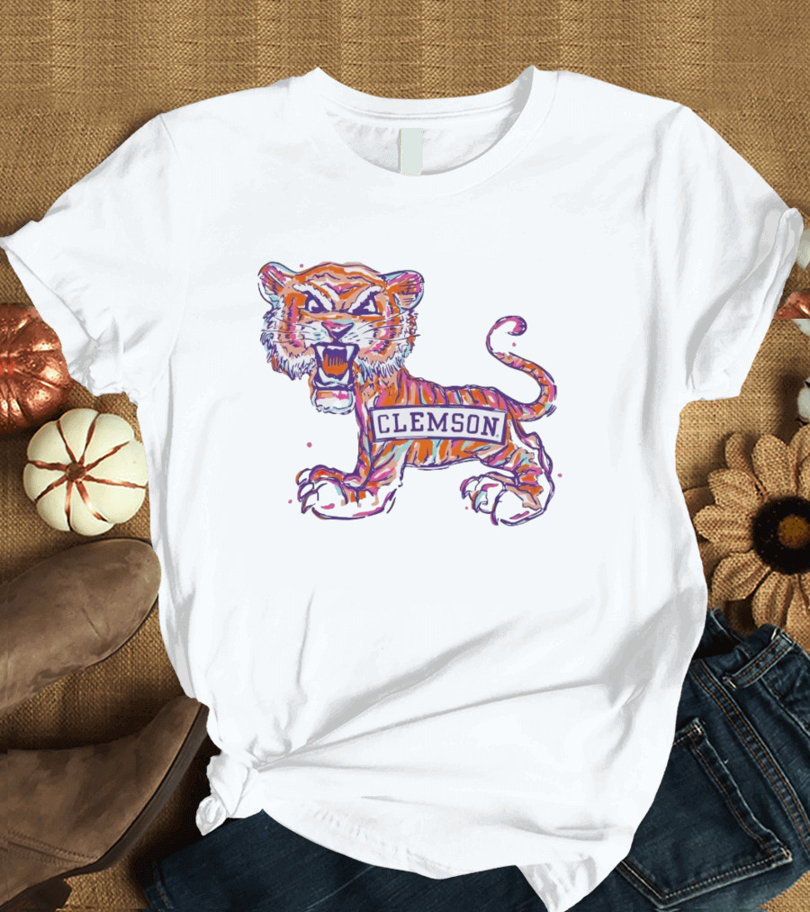 Clemson Tigers Fierce Painted Mascot Shirt made from 100% pre-shrunk ring-spun cotton, unisex regular fit based on U.S. standard sizing. The shirt is designed, cut, sewn, and printed in the United States. Available in sizes S-5XL.