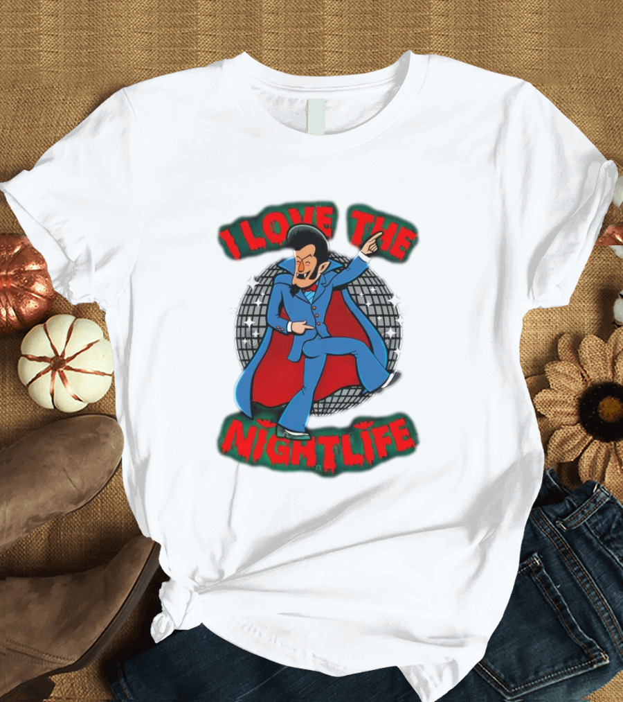 I Love The Nightlife Dracula Disco Dancing With Cape And Disco Ball T-Shirt