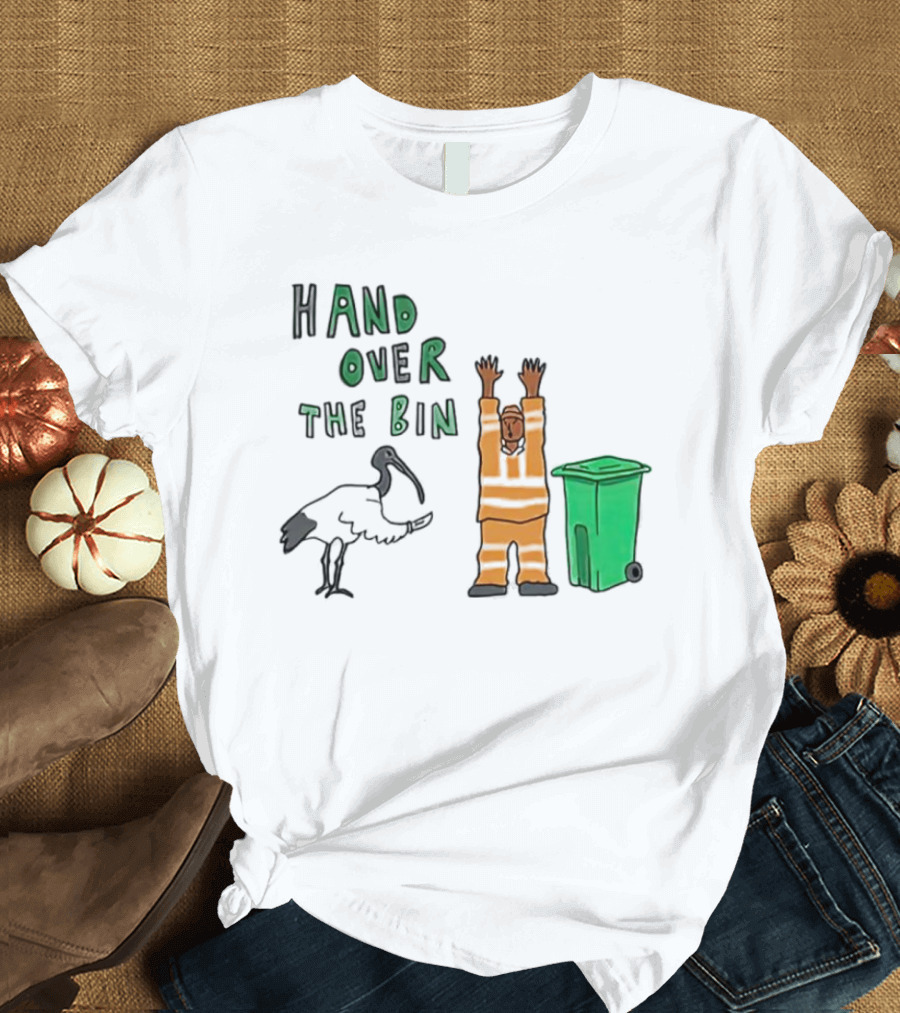 Hand Over The Bin Garbage Collector And Bird Cartoon Scene T-Shirt