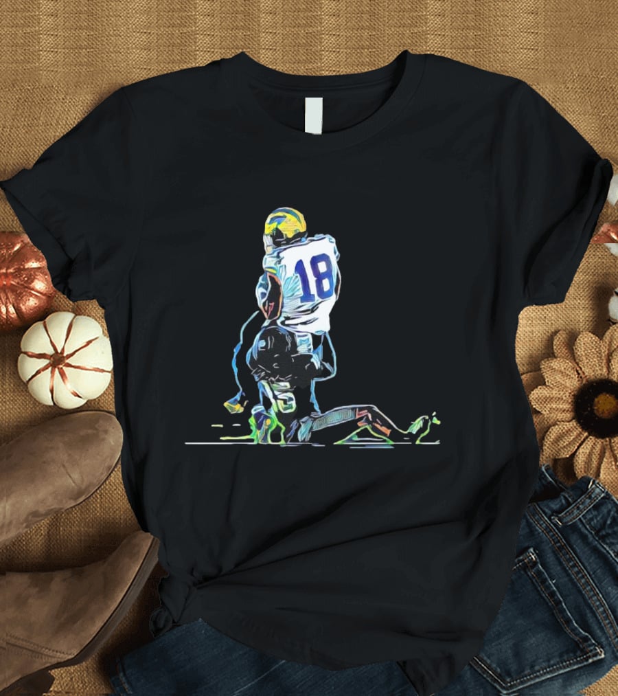 Michigan Wolverines Colston Loveland 18 Neon Football Sketch T-Shirt