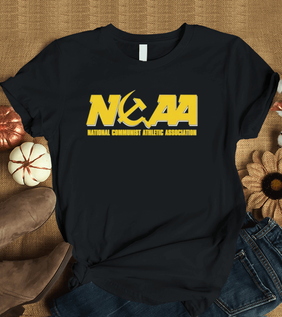 NCAA National Communist Athletic Association Hammer Sickle Michigan Wolverines Shirt made from 100% pre-shrunk ring-spun cotton, unisex regular fit based on U.S. standard sizing. The shirt is designed, cut, sewn, and printed in the United States. Available in sizes S-5XL.
