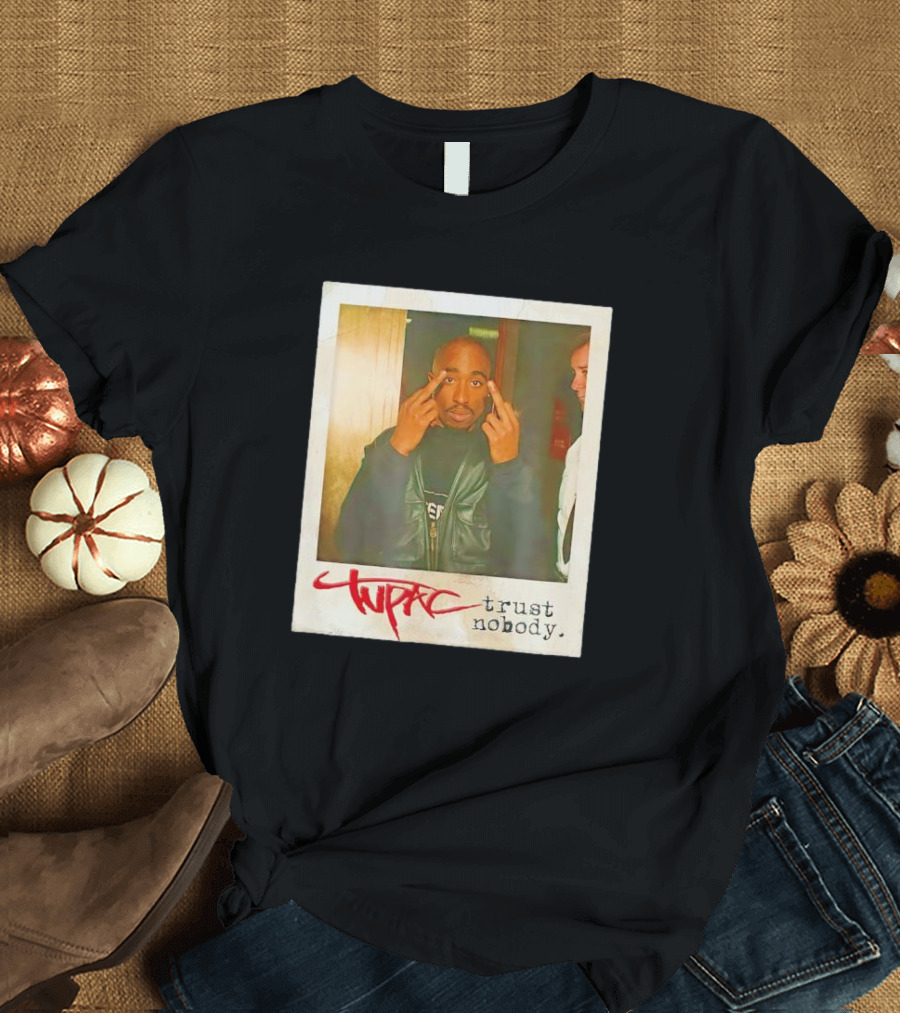 Tupac Polaroid Trust Nobody Shirt made from 100% pre-shrunk ring-spun cotton, unisex regular fit based on U.S. standard sizing. The shirt is designed, cut, sewn, and printed in the United States. Available in sizes S-5XL.