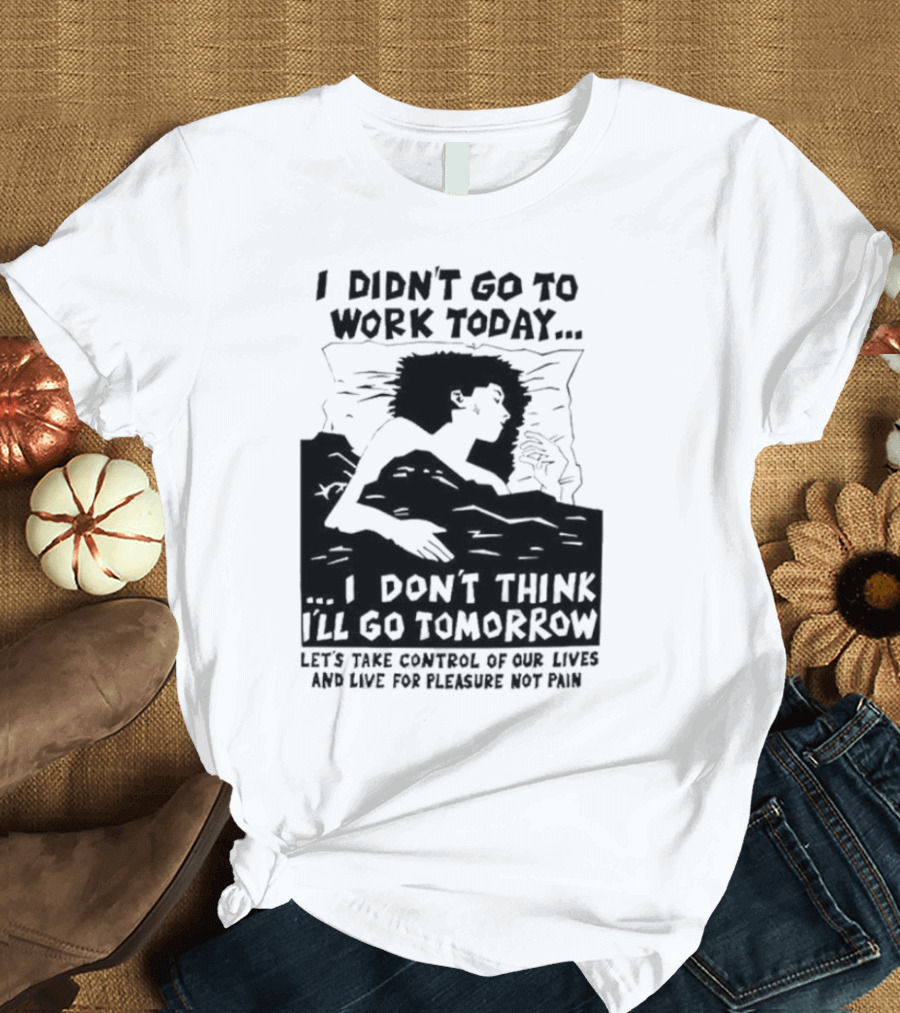I Didn’t Go to Work Today I Don’t Think I’ll Go Tomorrow Let’s Take Control of Our Lives and Live for Pleasure Not Pain Shirt made from 100% pre-shrunk ring-spun cotton, unisex regular fit based on U.S. standard sizing. The shirt is designed, cut, sewn, and printed in the United States. Available in sizes S-5XL.