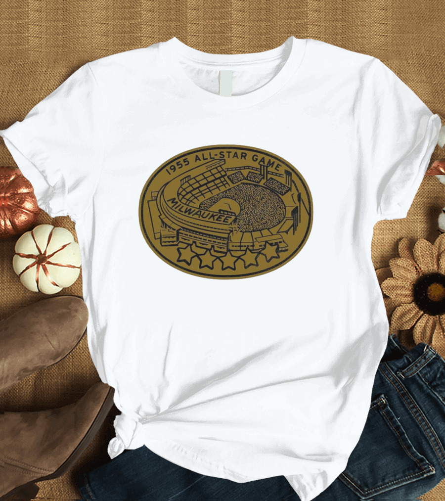 Milwaukee 1955 All-Star Game Stadium Five Stars Emblem Shirt made from 100% pre-shrunk ring-spun cotton, unisex regular fit based on U.S. standard sizing. The shirt is designed, cut, sewn, and printed in the United States. Available in sizes S-5XL.