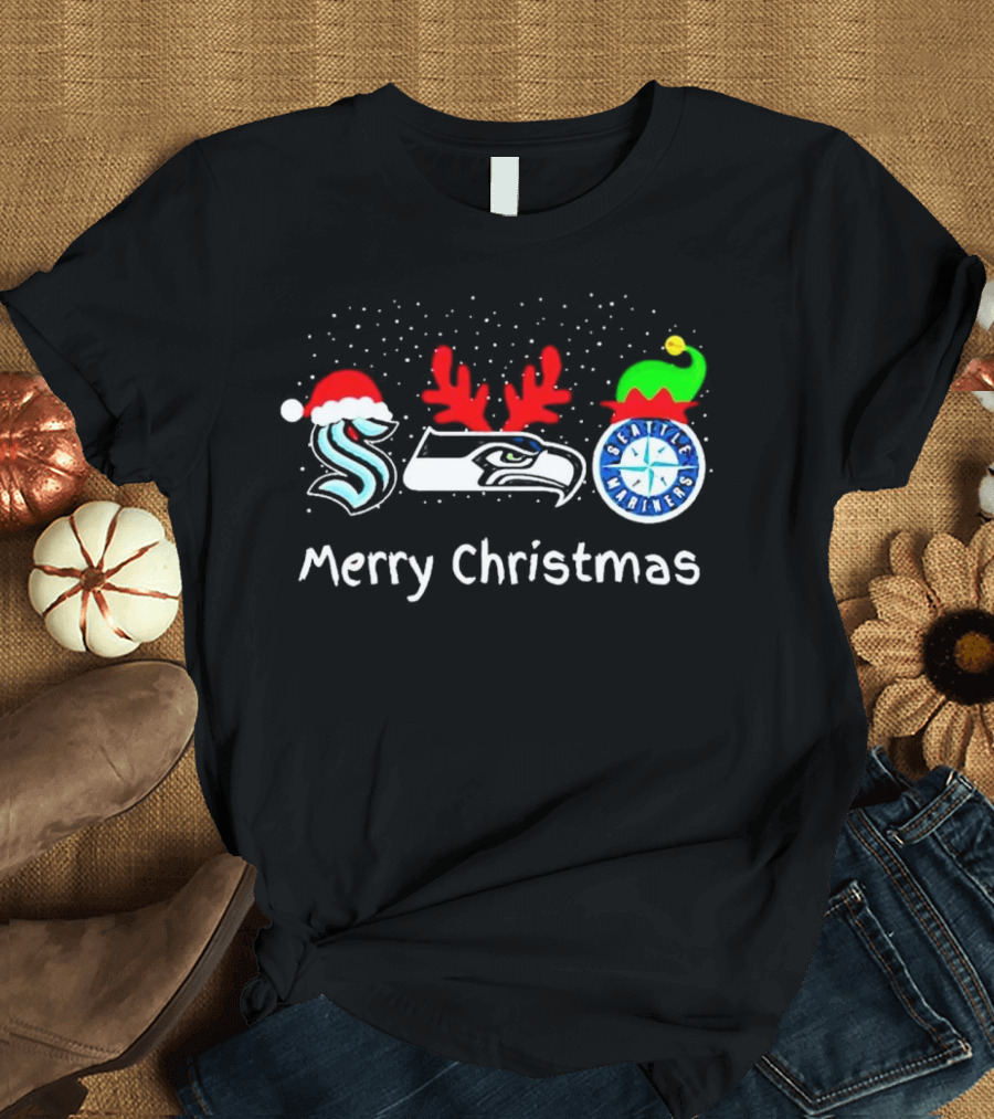 Seattle Kraken Seahawks Mariners Santa Reindeer Elf Merry Christmas T-Shirt