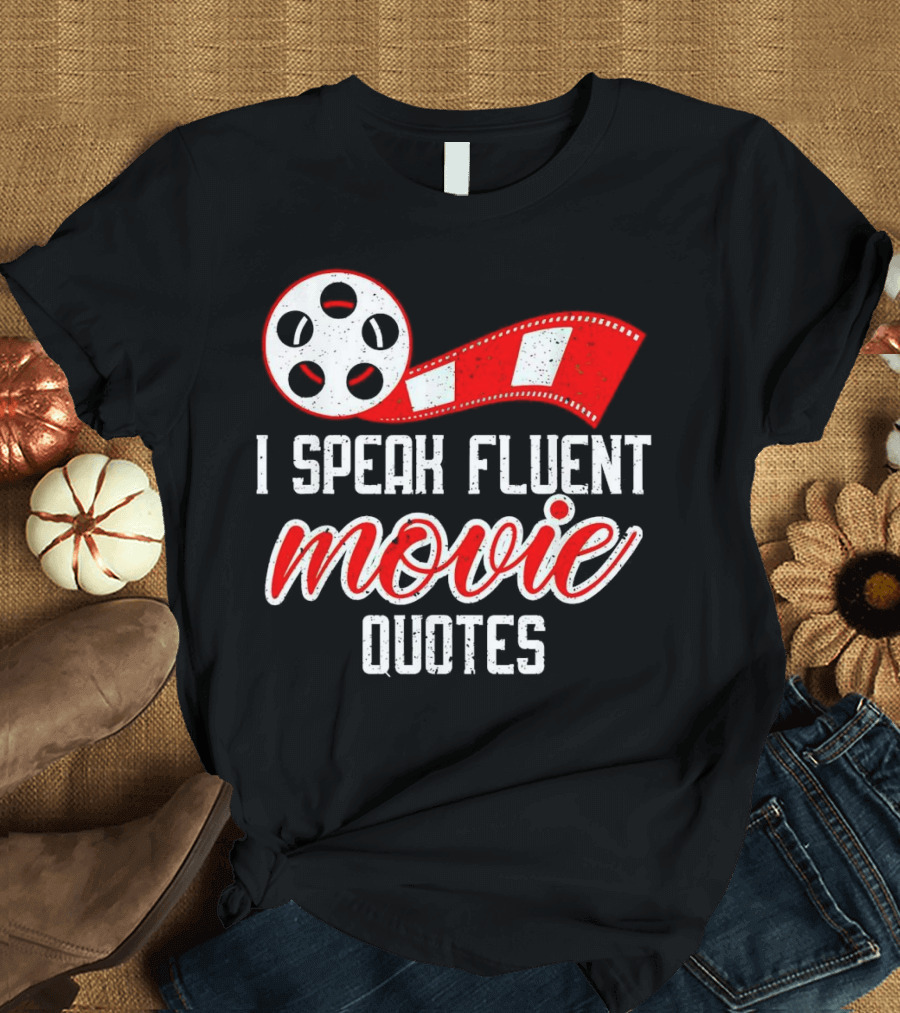 I Speak Fluent Movie Quotes Film Reel and Red Filmstrip Shirt made from 100% pre-shrunk ring-spun cotton, unisex regular fit based on U.S. standard sizing. The shirt is designed, cut, sewn, and printed in the United States. Available in sizes S-5XL.