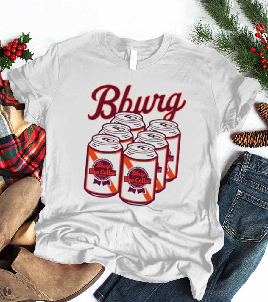 Bburg Blue Collar Football Cans Shirt made from 100% pre-shrunk ring-spun cotton, unisex regular fit based on U.S. standard sizing. The shirt is designed, cut, sewn, and printed in the United States. Available in sizes S-5XL.