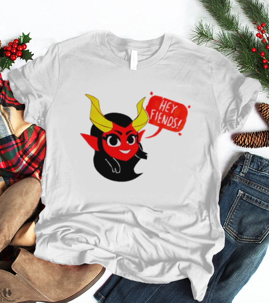 Ginnydi Hey Fiends Demon Cartoon Character With Red Face Yellow Horns And Black Hair T-Shirt