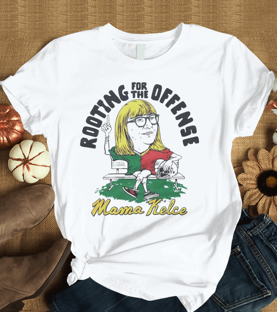 Mama Kelce Rooting For The Offense Shirt made from 100% pre-shrunk ring-spun cotton, unisex regular fit based on U.S. standard sizing. The shirt is designed, cut, sewn, and printed in the United States. Available in sizes S-5XL.