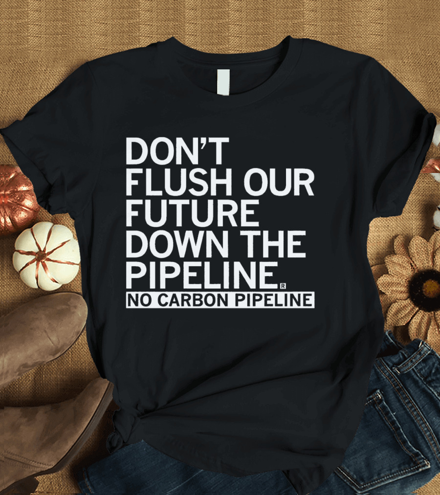 DON’T FLUSH OUR FUTURE DOWN THE PIPELINE NO CARBON PIPELINE Shirt made from 100% pre-shrunk ring-spun cotton, unisex regular fit based on U.S. standard sizing. The shirt is designed, cut, sewn, and printed in the United States. Available in sizes S-5XL.