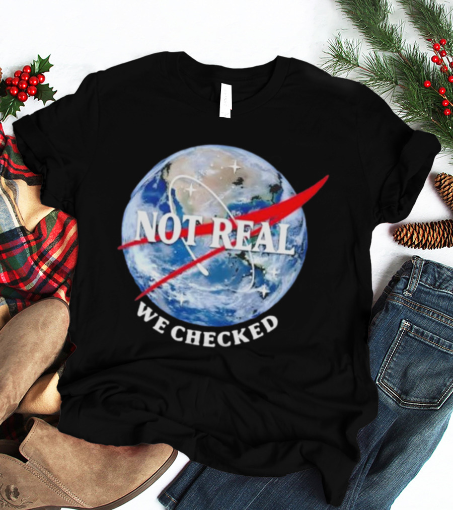 Not Real We Checked Earth NASA Shirt made from 100% pre-shrunk ring-spun cotton, unisex regular fit based on U.S. standard sizing. The shirt is designed, cut, sewn, and printed in the United States. Available in sizes S-5XL.