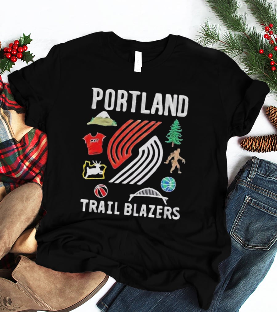 Portland Trail Blazers NBA X Market Claymation Mountains Trees Basketball Sasquatch Bridge T-Shirt