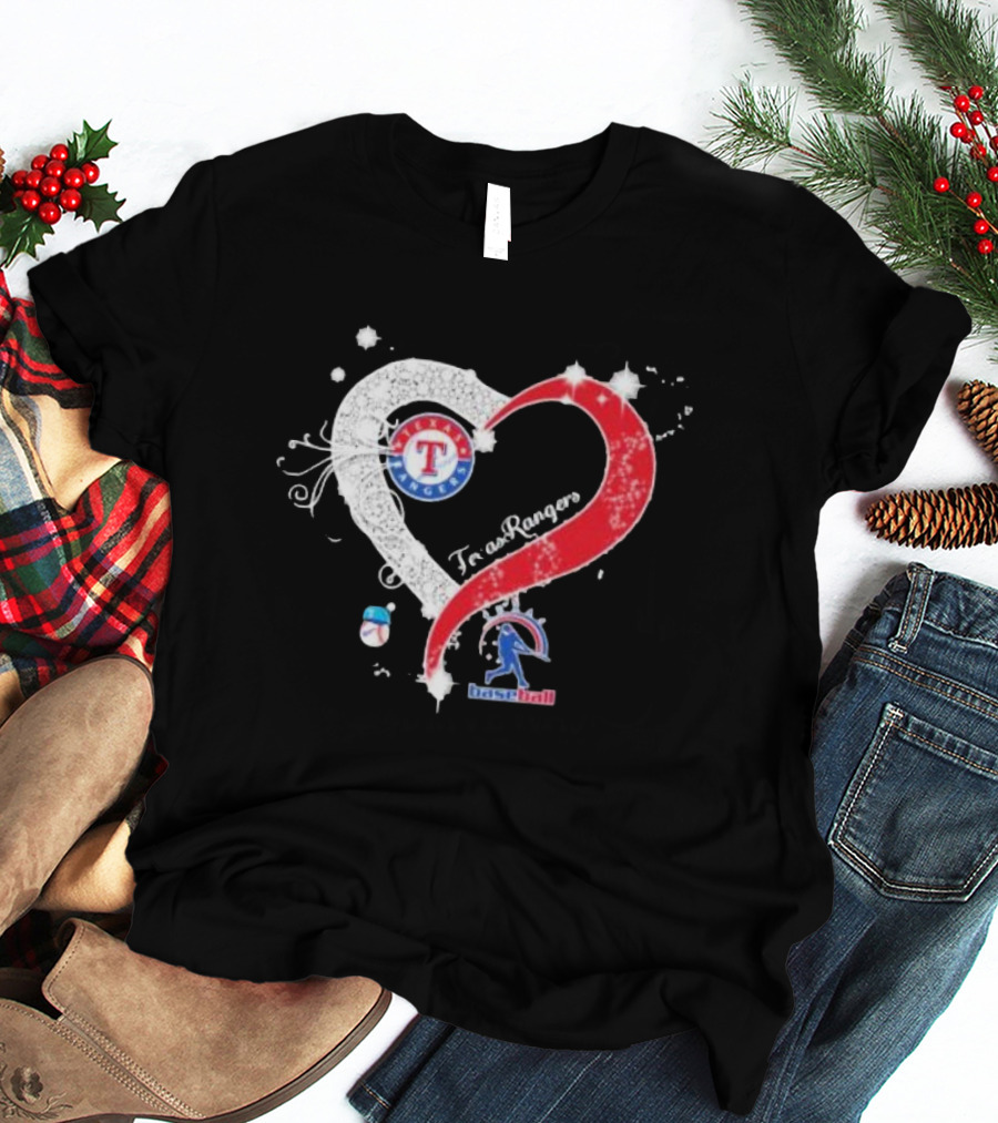 Texas Rangers Baseball Heart Logo Design With Team T-Shirt