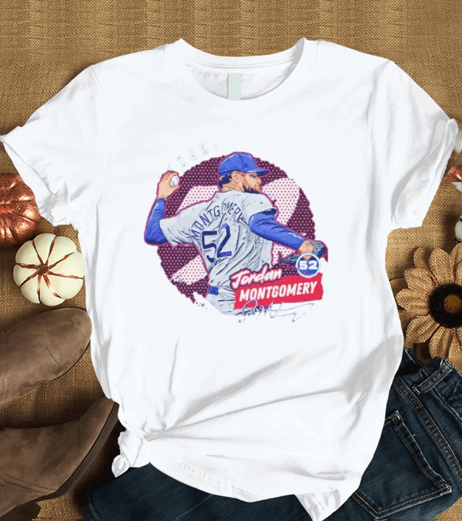 Jordan Montgomery Texas Baseball 52 Signature Shirt made from 100% pre-shrunk ring-spun cotton, unisex regular fit based on U.S. standard sizing. The shirt is designed, cut, sewn, and printed in the United States. Available in sizes S-5XL.