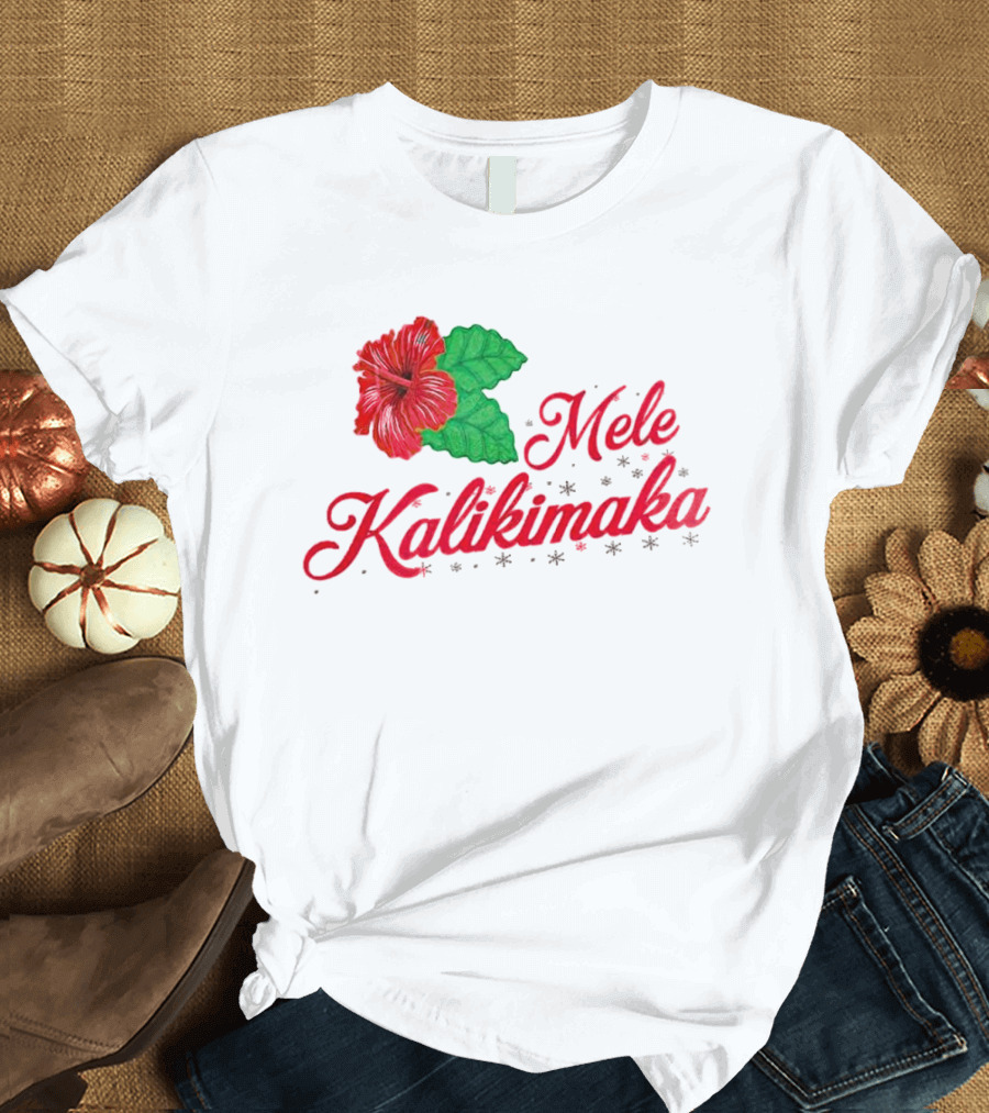 Mele Kalikimaka Red Hibiscus Flower With Green Leaves T-Shirt