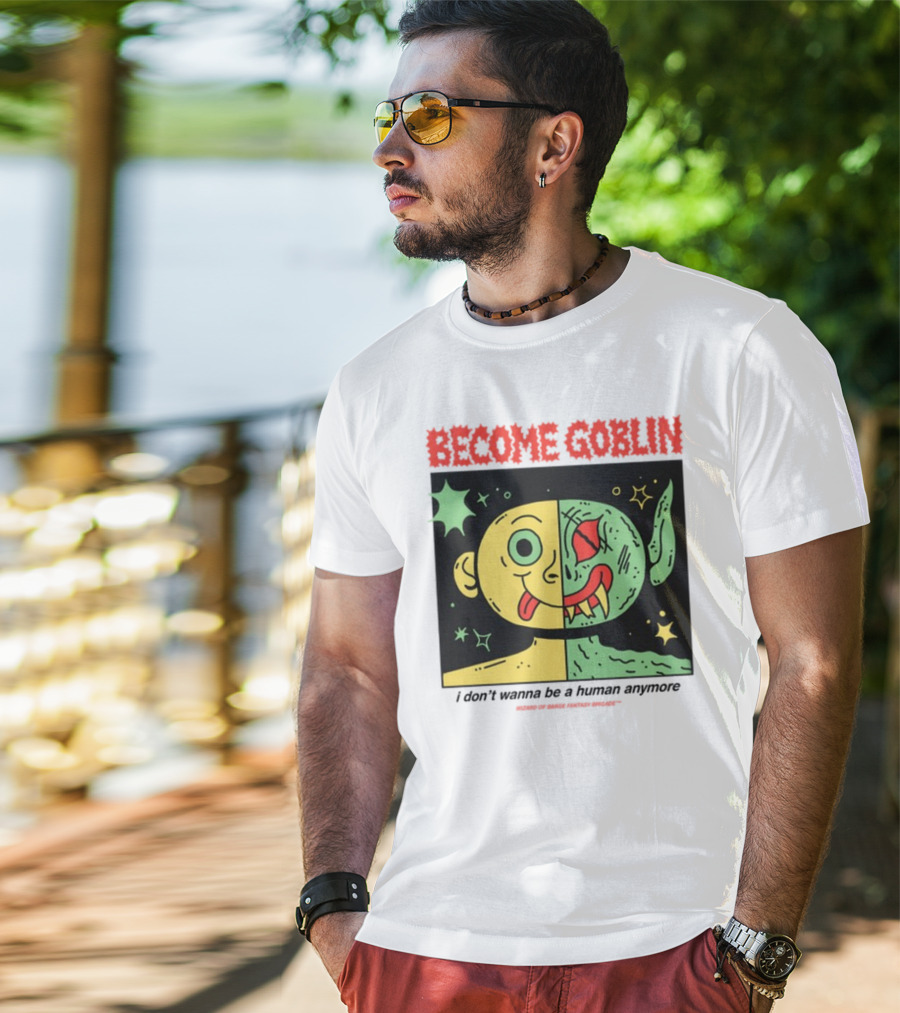 Become Goblin I Don't Wanna Be a Human Anymore Wizard of Barge Fantasy Brigade Shirt made from 100% pre-shrunk ring-spun cotton, unisex regular fit based on U.S. standard sizing. The shirt is designed, cut, sewn, and printed in the United States. Available in sizes S-5XL.