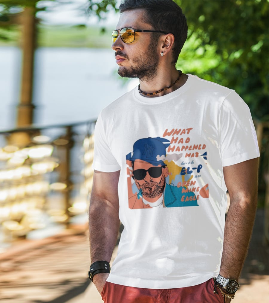 What Had Happened Was with El-P and Open Mike Eagle Yankees Cap Shirt made from 100% pre-shrunk ring-spun cotton, unisex regular fit based on U.S. standard sizing. The shirt is designed, cut, sewn, and printed in the United States. Available in sizes S-5XL.