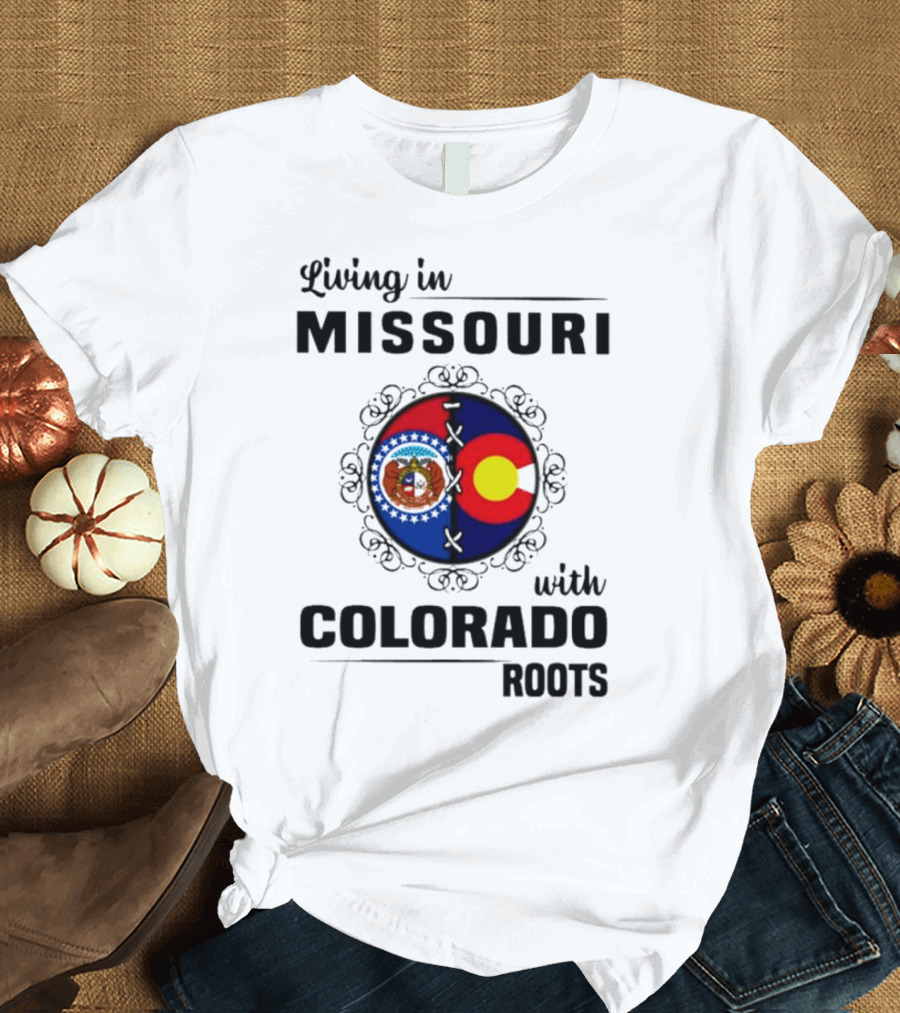 Living In Missouri With Colorado Roots State Emblems And Flags T-Shirt