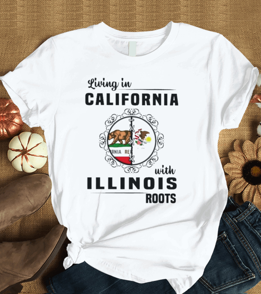 Living In California With Illinois Roots California Republic And Illinois State Flag Elements T-Shirt