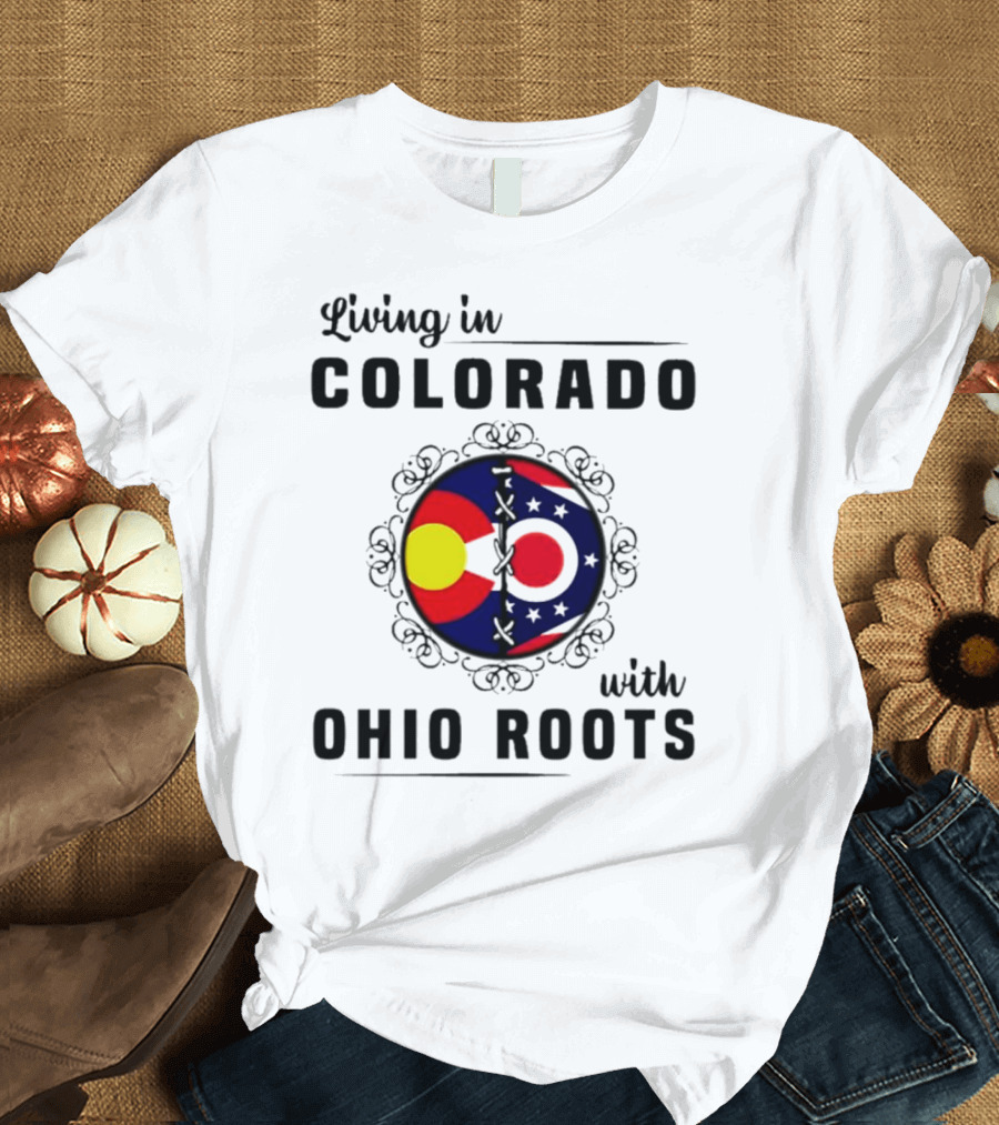 Living In Colorado With Ohio Roots Flag Circle T-Shirt