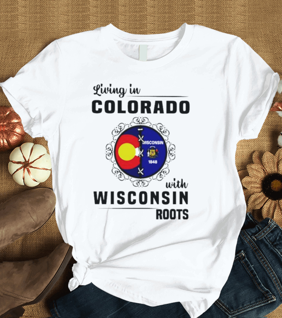 Living In Colorado With Wisconsin Roots Colorado Flag Wisconsin State Seal T-Shirt