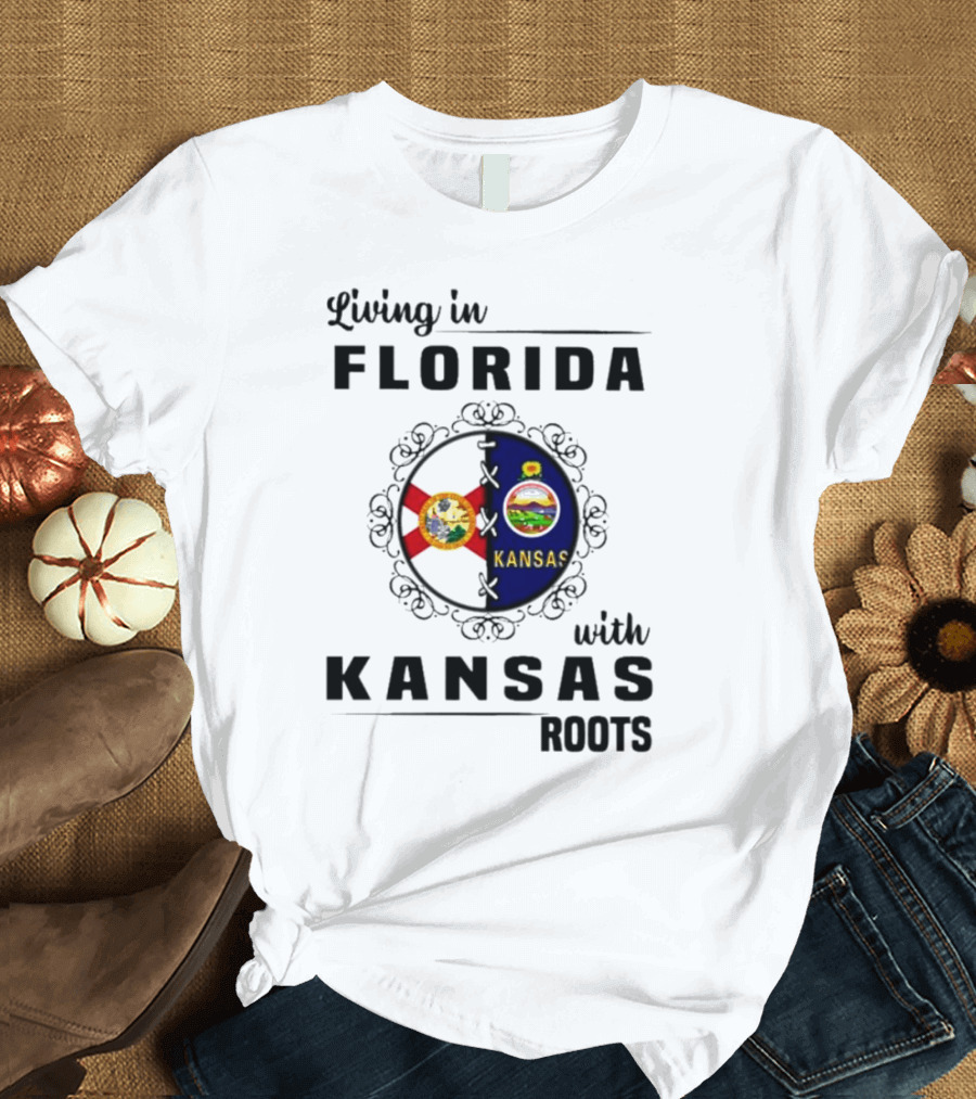 Living In Florida With Kansas Roots State Flags Emblem T-Shirt