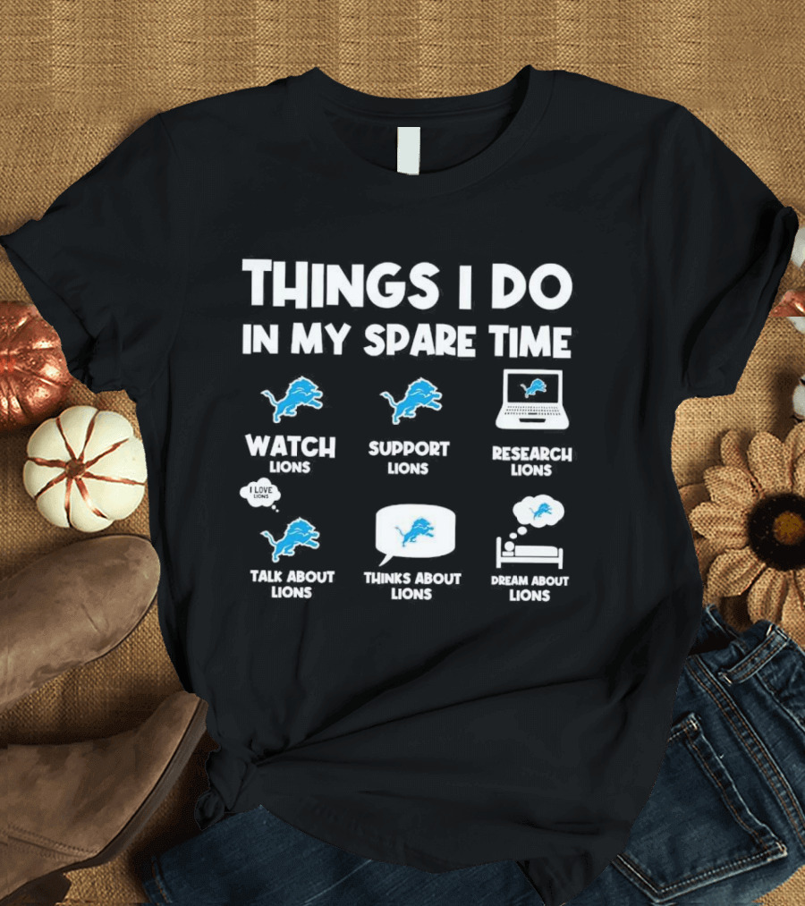 Things I Do in My Spare Time Watch Lions Support Lions Research Lions Talk About Lions Thinks About Lions Dream About Lions Shirt made from 100% pre-shrunk ring-spun cotton, unisex regular fit based on U.S. standard sizing. The shirt is designed, cut, sewn, and printed in the United States. Available in sizes S-5XL.