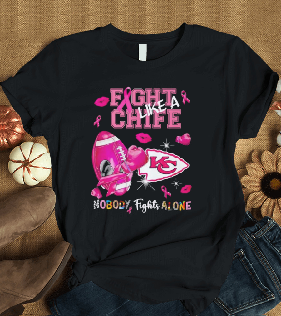 Fight Like A Chief Nobody Fights Alone Breast Cancer KC Pink Ribbon Football Gloves T-Shirt