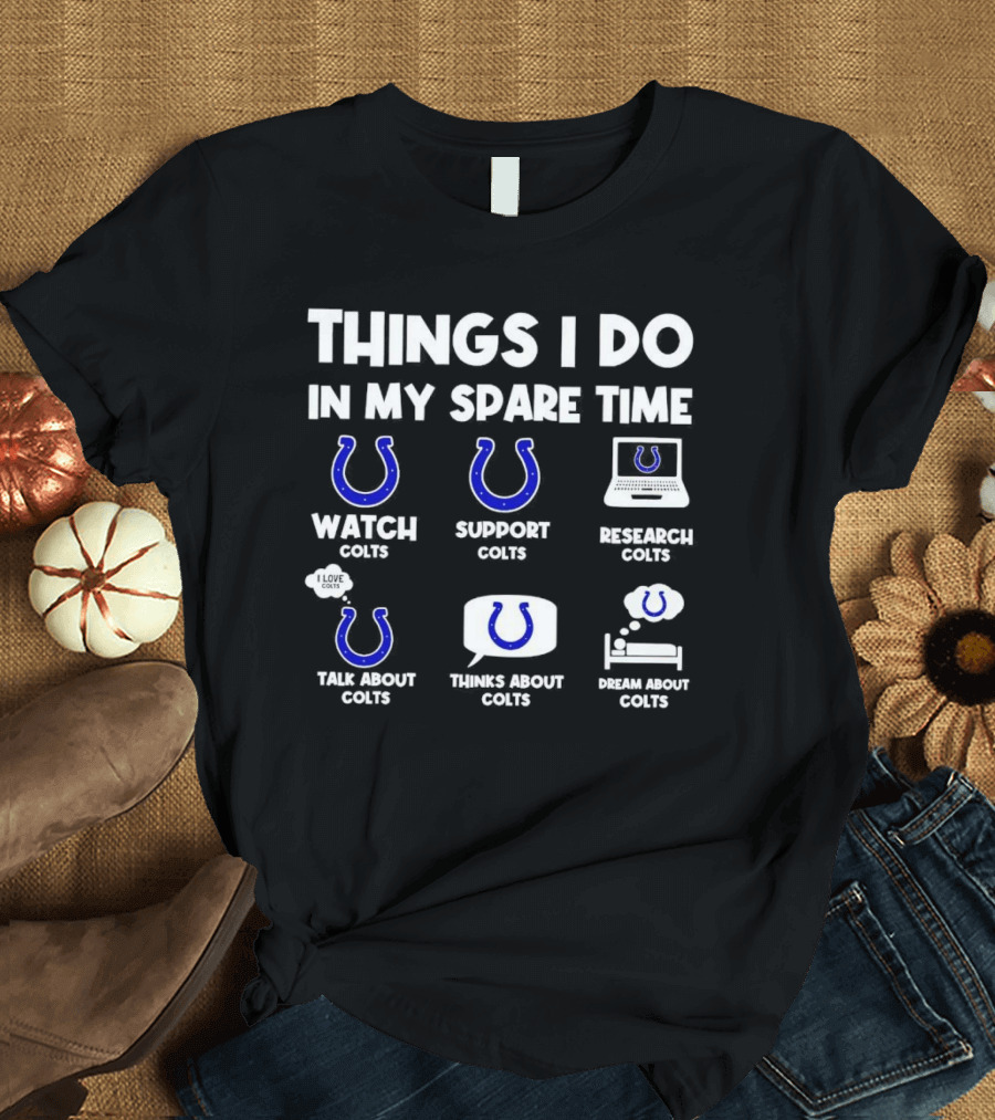 Things I Do in My Spare Time Watch Colts Support Colts Research Colts Talk About Colts Thinks About Colts Dream About Colts Shirt made from 100% pre-shrunk ring-spun cotton, unisex regular fit based on U.S. standard sizing. The shirt is designed, cut, sewn, and printed in the United States. Available in sizes S-5XL.