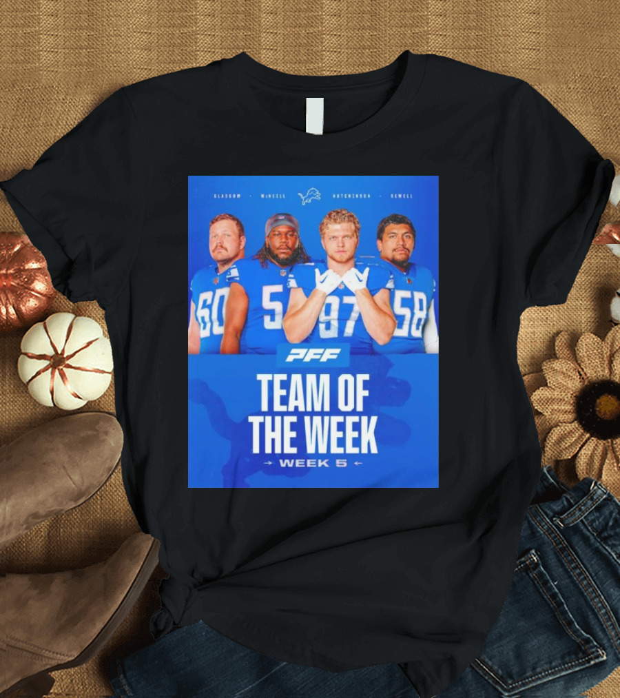 PFF Detroit Lions Glasgow McNeill Hutchinson Sewell Team Of The Week Week 5 T-Shirt